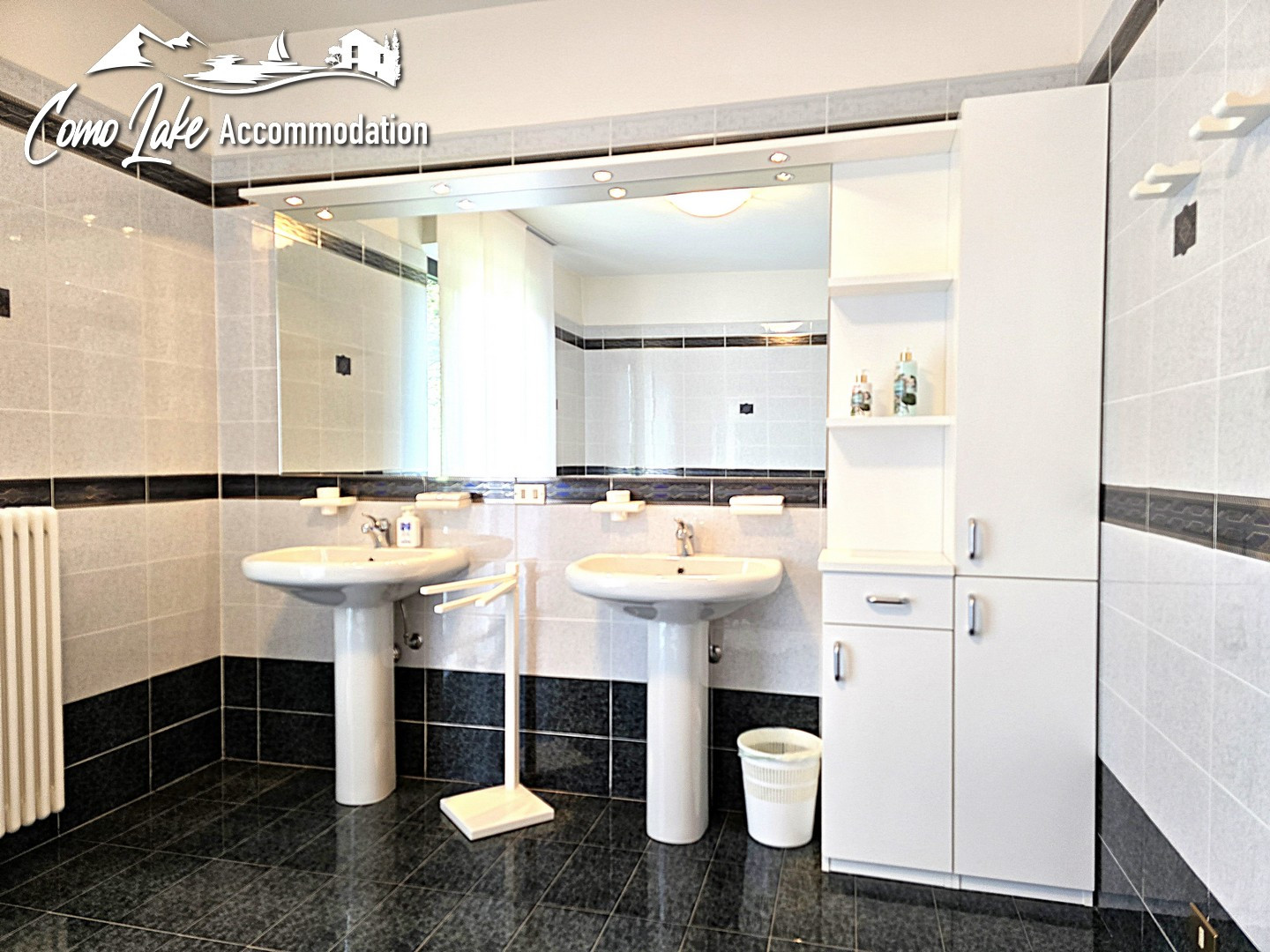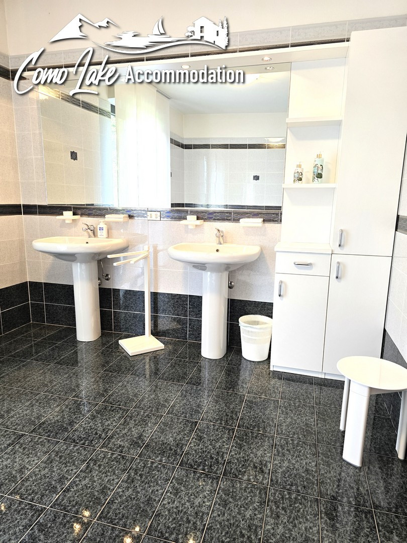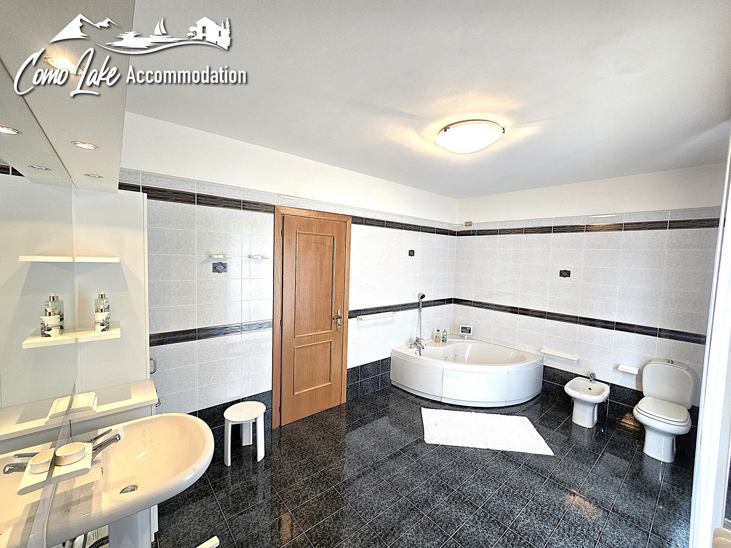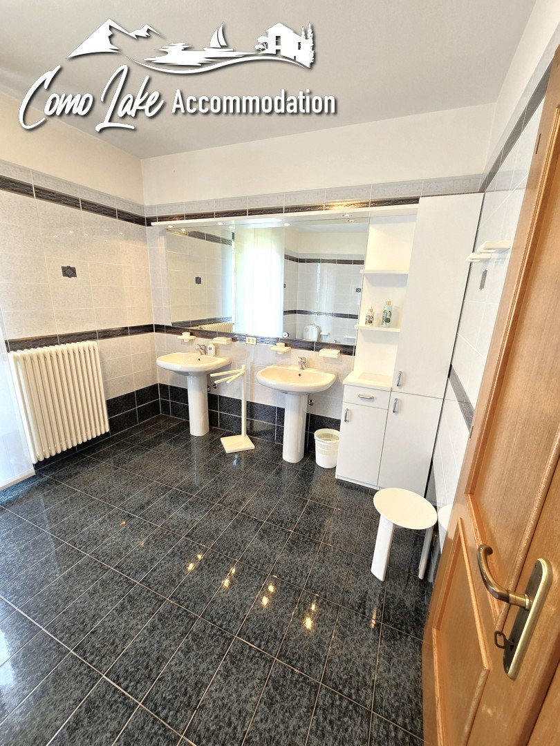 Primo piano: Tre camere da letto, di cui due matrimoniali con bagno en suite e una con letti singoli e balcone con vista mozzafiato sul lago. Ogni ambiente è caratterizzato da arredi di qualità e dettagli che creano un'atmosfera accogliente ed elegante.