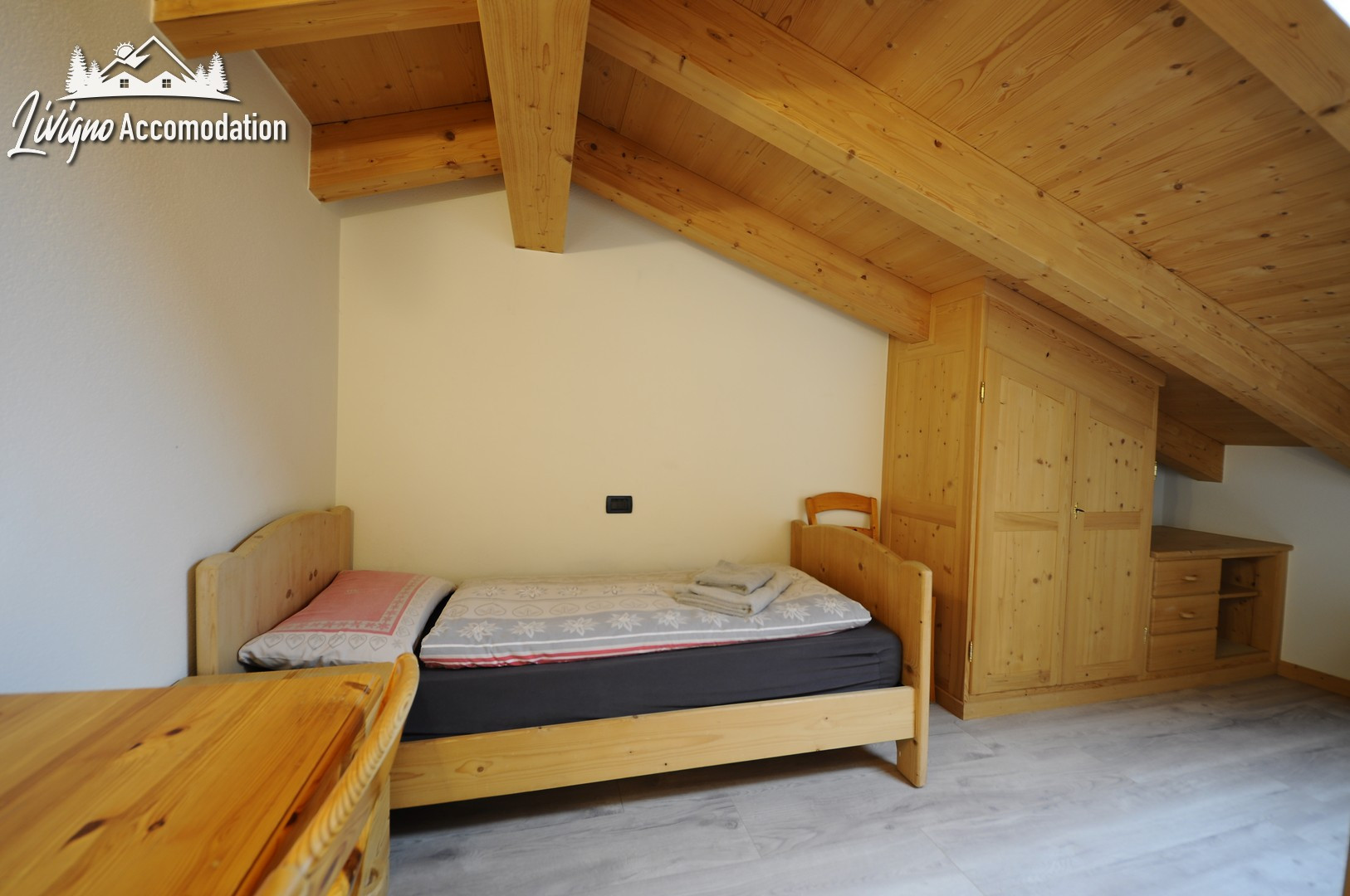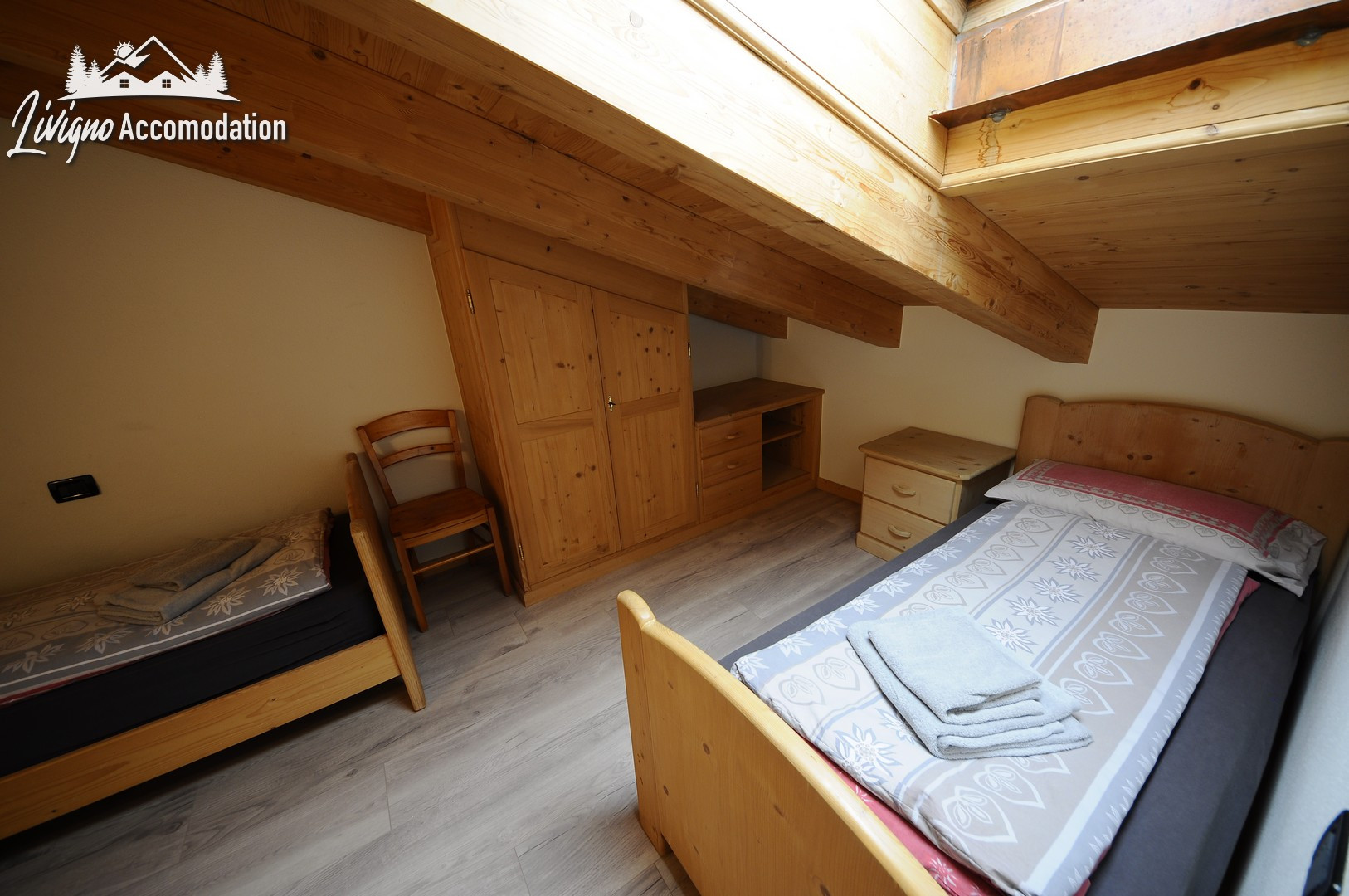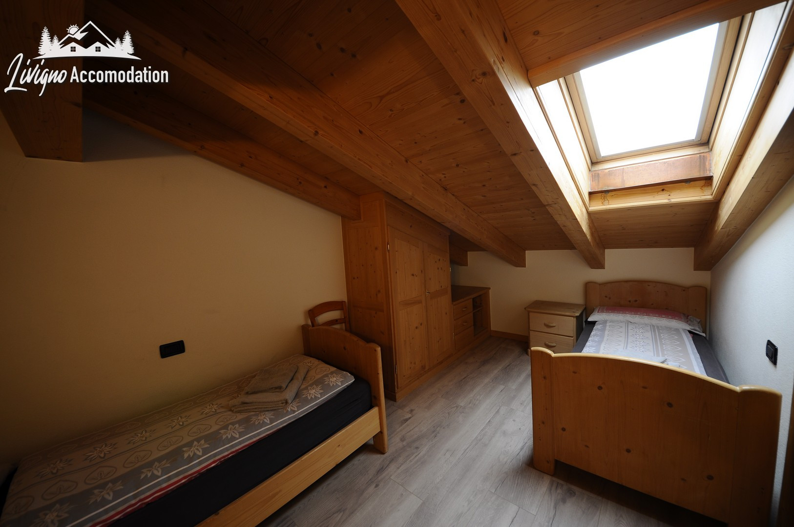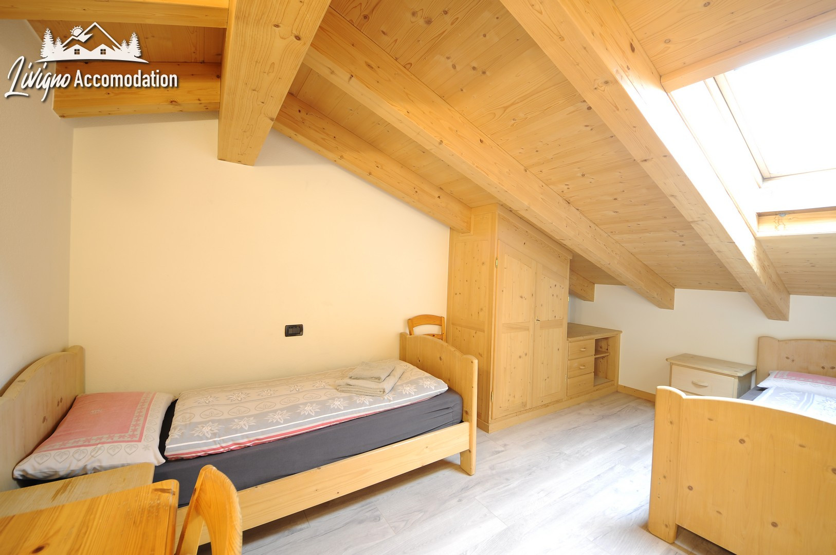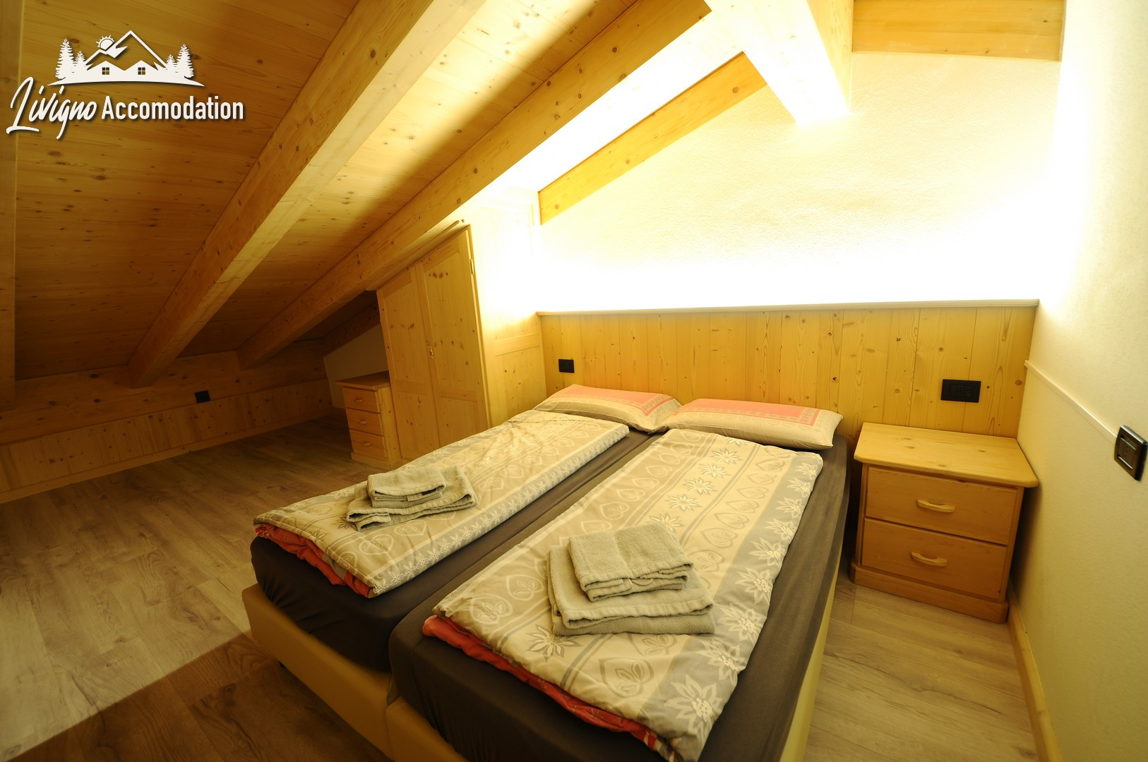 Un ampio quadrilocale che si estende su due livelli, regalandoti una vista mozzafiato sulle maestose montagne livignasche. L'arredamento classico, caldo e accogliente, ti farà sentire come a casa, mentre i numerosi comfort a tua disposizione ti permetteranno di rilassarti e godere appieno della tua vacanza.