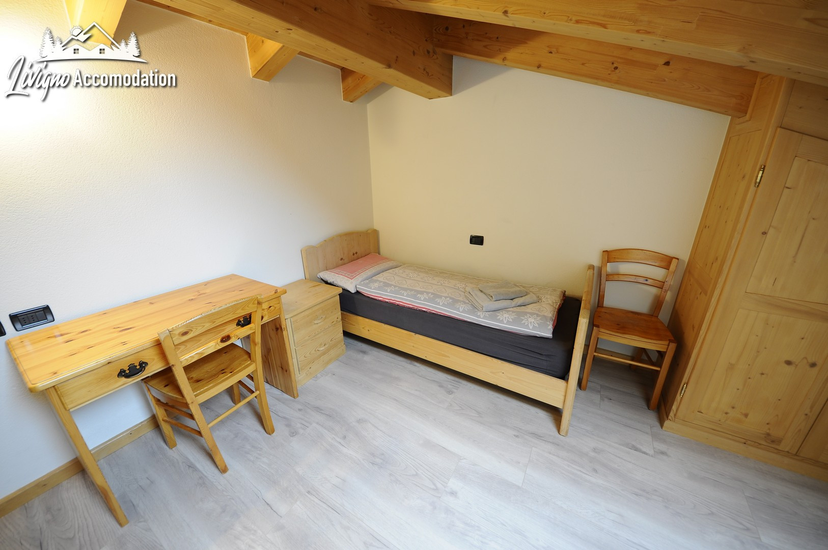 L’ambiente interno è composto da una camera matrimoniale, una camera con letto singolo, una camera mansardata con letto matrimoniale ed un'ultima camera mansardata con tre letti singoli il passaggio che conduce all'ultima stanza in mansarda ha un altezza molto ridotta. Si raccomanda di prestare estrema attenzione (soprattutto alla testa).In cucina, trovate un divano a 2 posti, una smart tv, una cucina attrezzata con un pratico piano cottura in vetroceramica, un forno, la lavastoviglie e molti utensili, infine vi è il bagno con vasca, doccia e lavatrice (a pagamento).