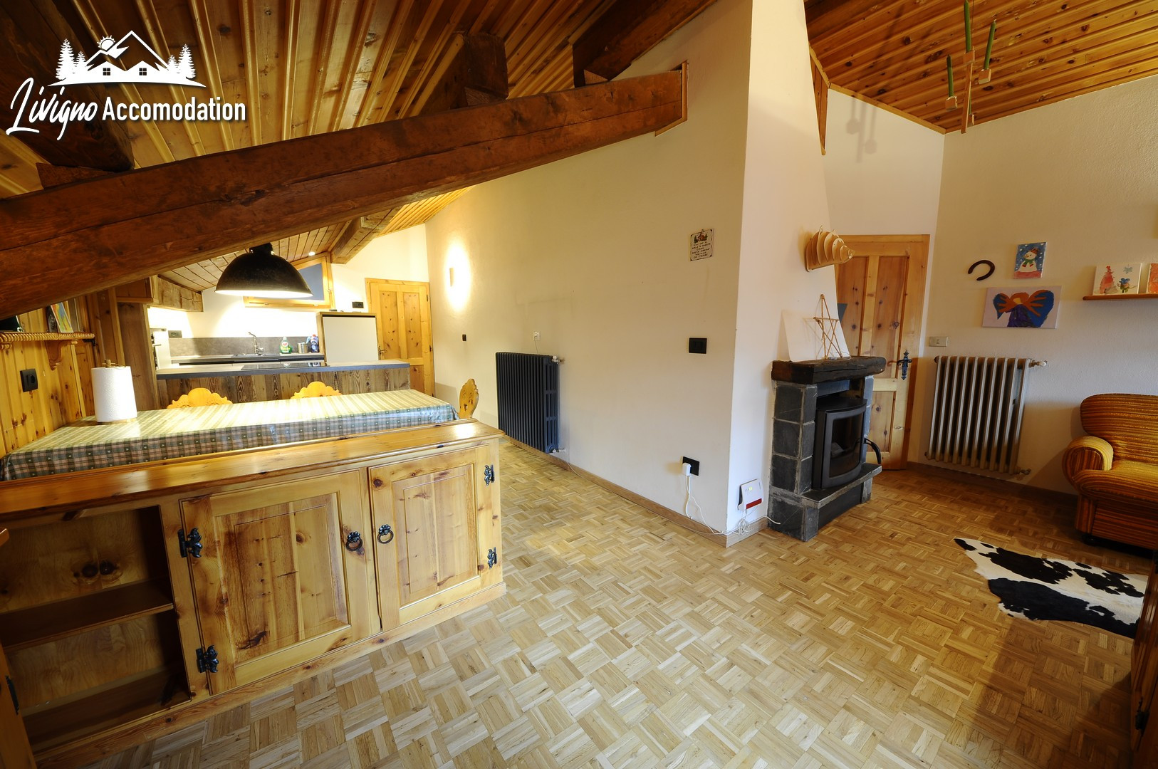 L'appartamento dispone di un comodo parcheggio privato esterno, ideale per chi viaggia in auto. Il balcone offre una vista mozzafiato sulle montagne circostanti, permettendovi di immergervi completamente nella bellezza paesaggistica di Livigno.