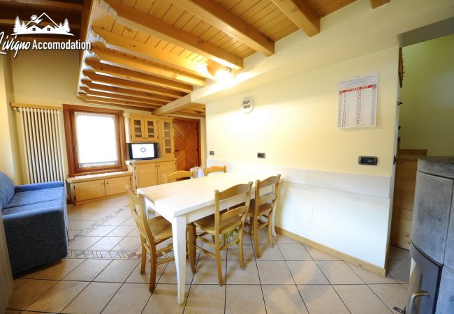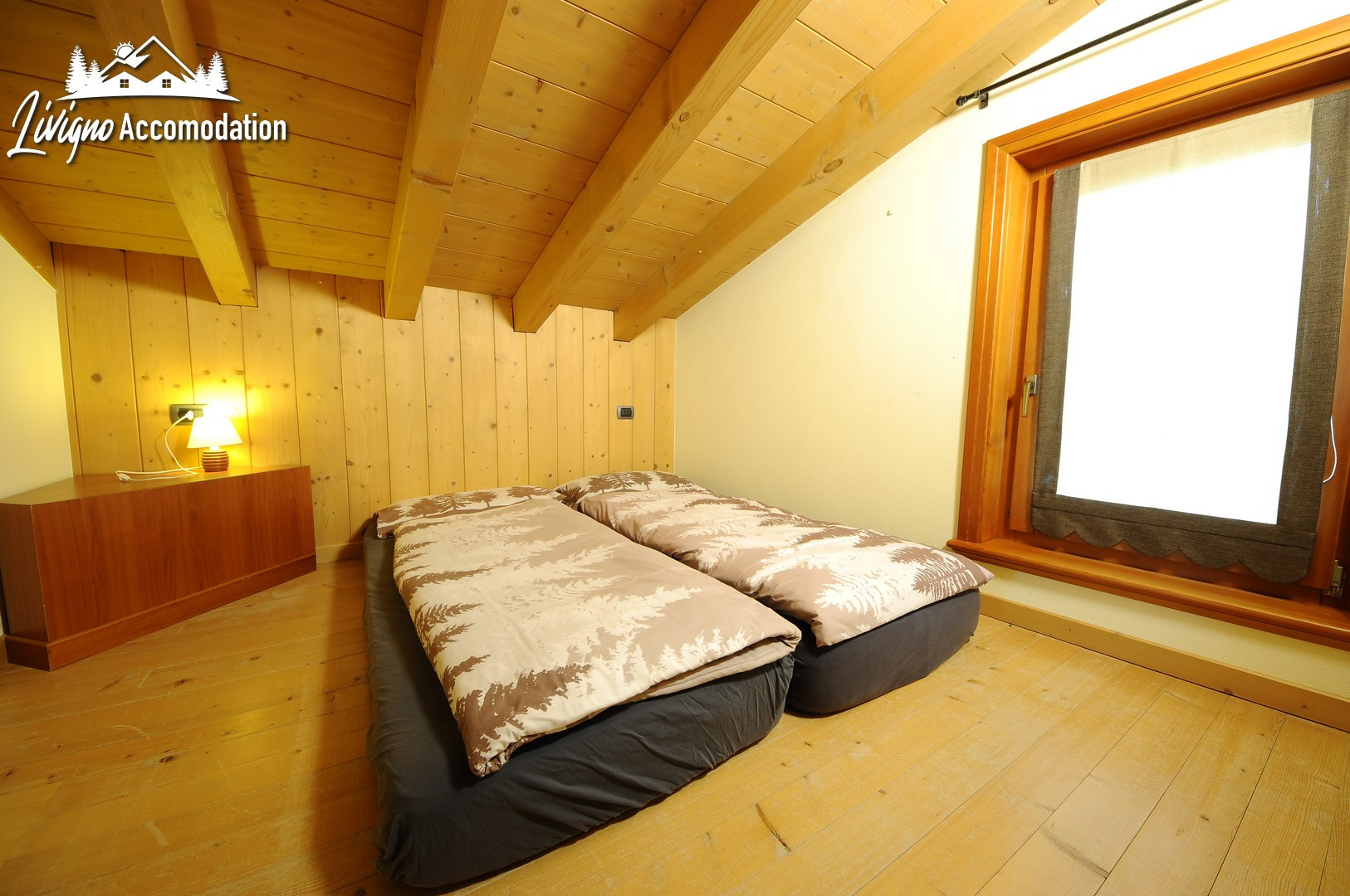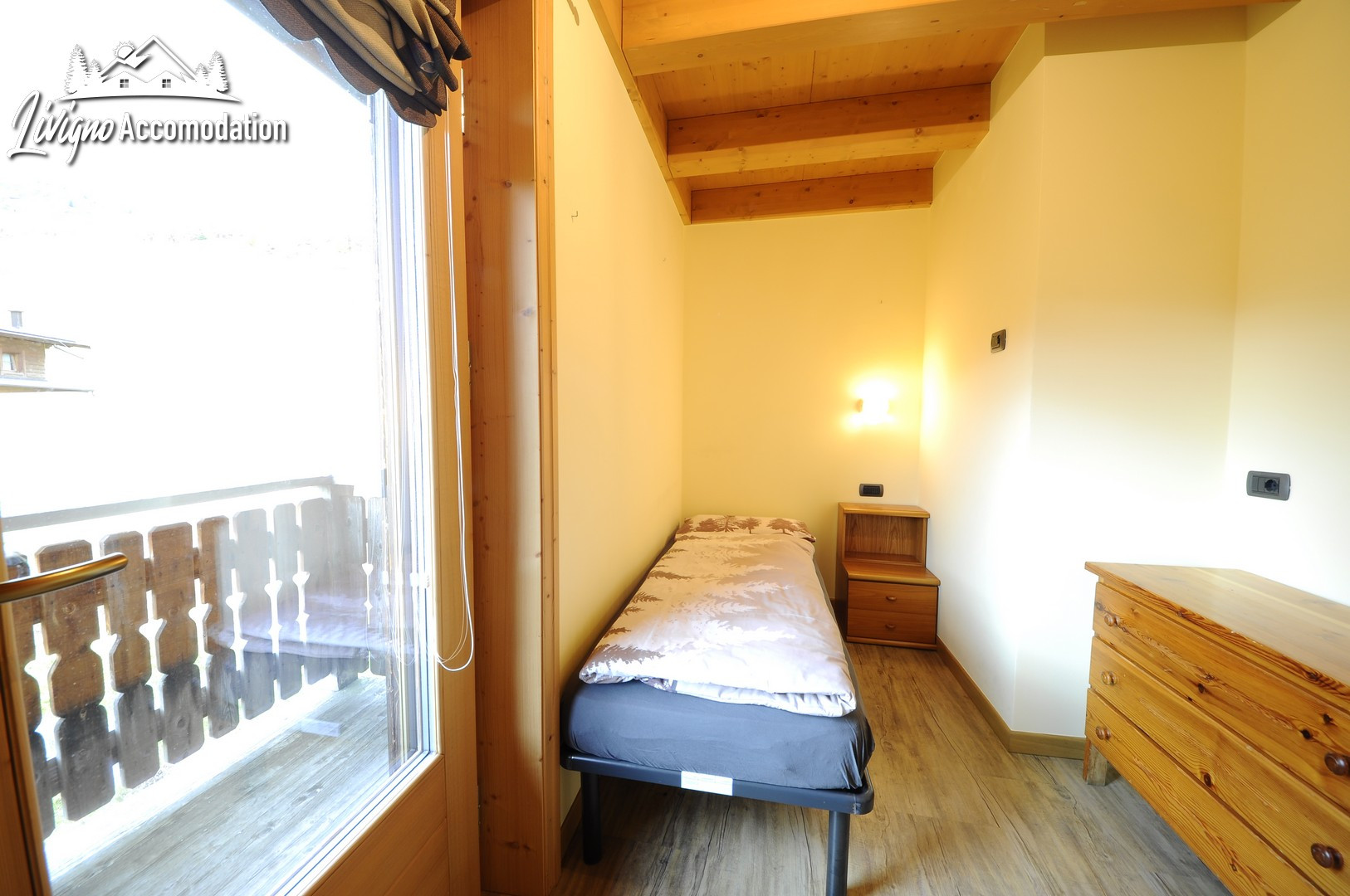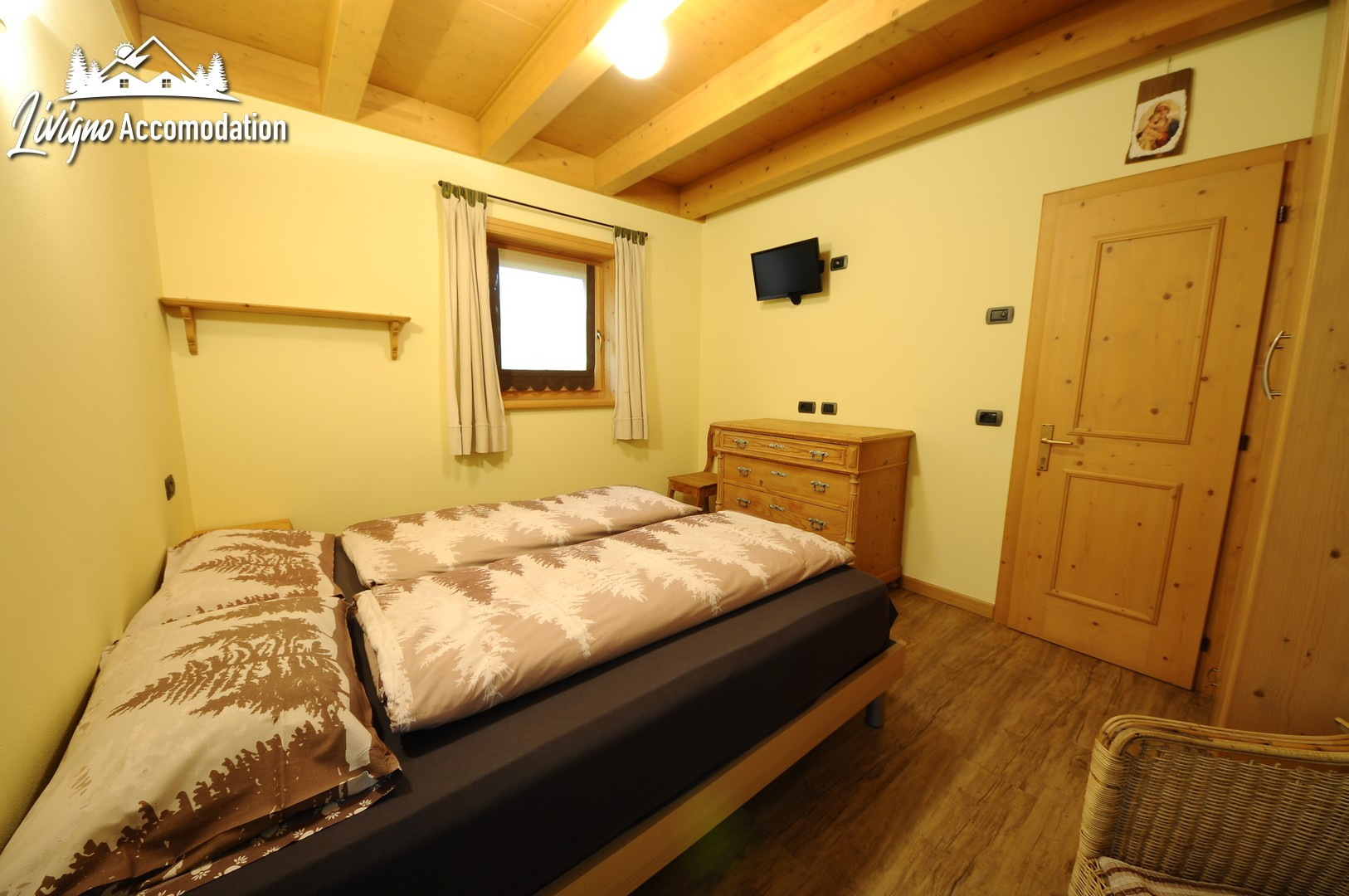 L'interno dello chalet è caratterizzato da un caldo camino che crea un'atmosfera accogliente e romantica, ideale per rilassarsi dopo una giornata sulle piste o di escursioni. La casa dispone di 5 posti letto, con una combinazione di letti matrimoniali e singoli che garantiscono comfort e flessibilità per ogni tipo di gruppo.