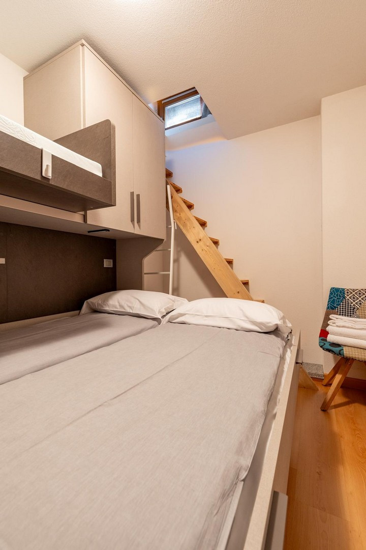La sistemazione include due camere da letto accuratamente allestite: una camera con un letto matrimoniale, una con un letto a castello e un ulteriore letto singolo, oltre a un divano letto. Questo layout garantisce comfort e privacy per tutti gli ospiti.