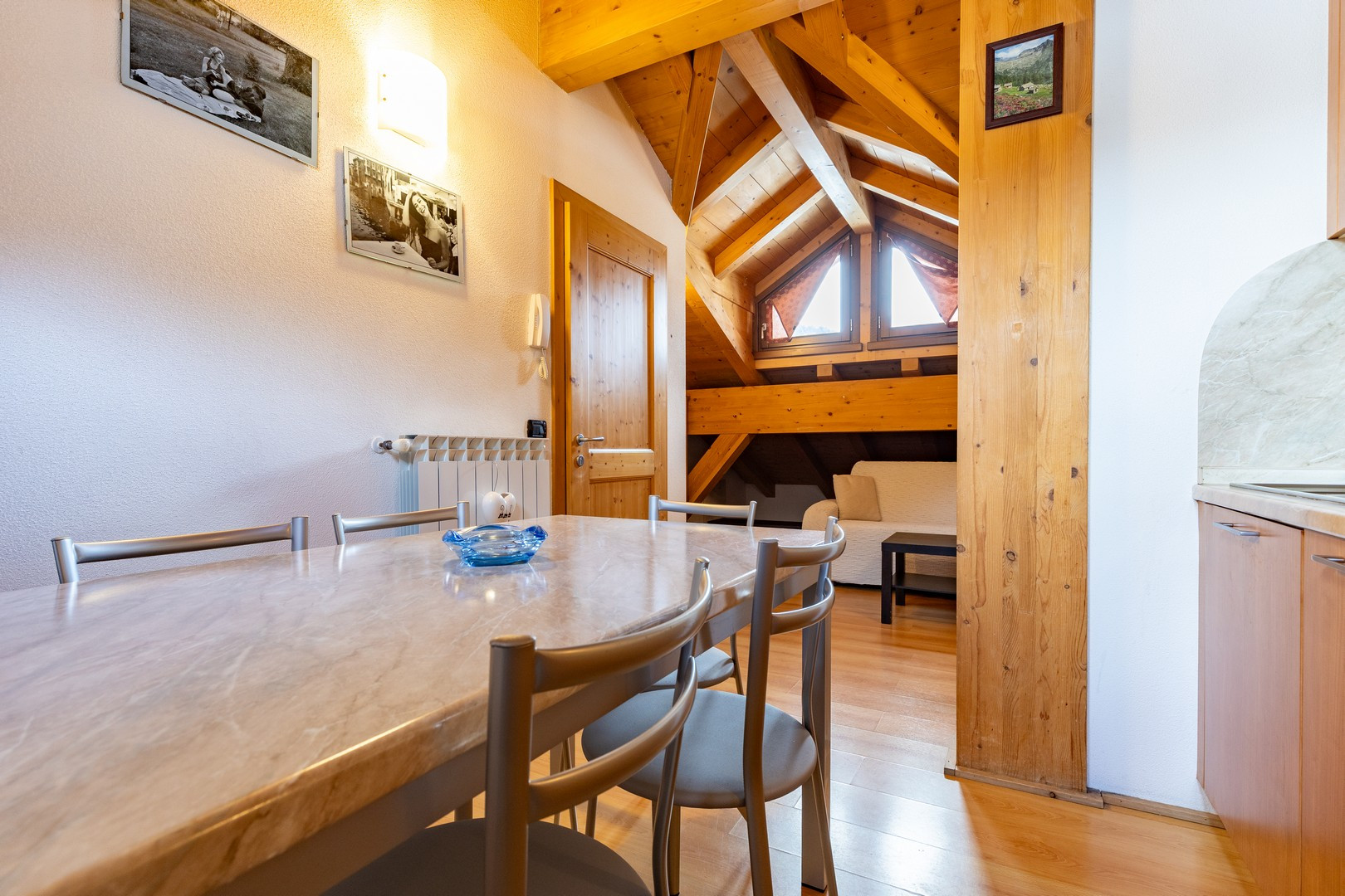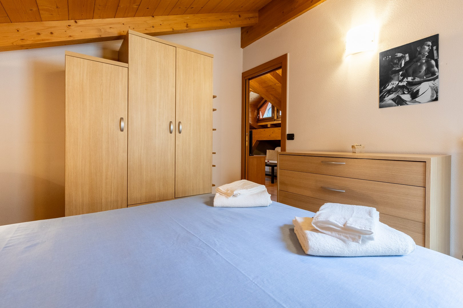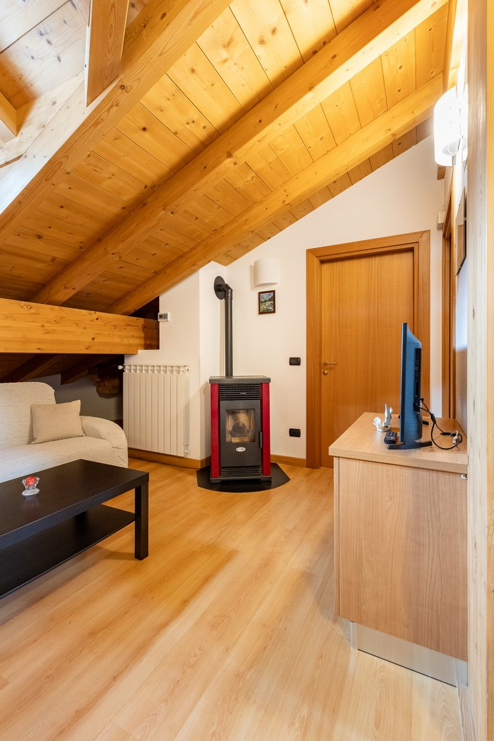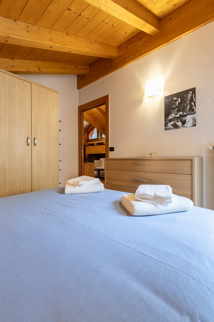 La camera da letto principale presenta un letto matrimoniale che invita al relax, con un ulteriore divano letto che garantisce flessibilità per eventuali ospiti. Il calore di un elegante camino aggiunge un tocco di romanticismo e comfort, perfetto per le serate invernali dove ci si può stringere insieme davanti al suo bagliore accogliente.